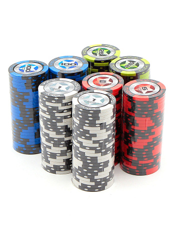 Материал фишки – двухцветный пластик с металлической сердцевиной внутри.