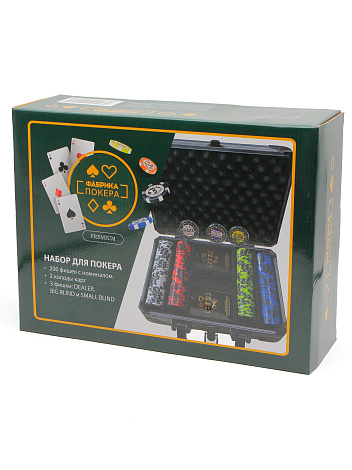 Набор для покера Фабрика Покера: Премиум-набор из 200 фишек для покера с номиналом в чёрном кейсе
