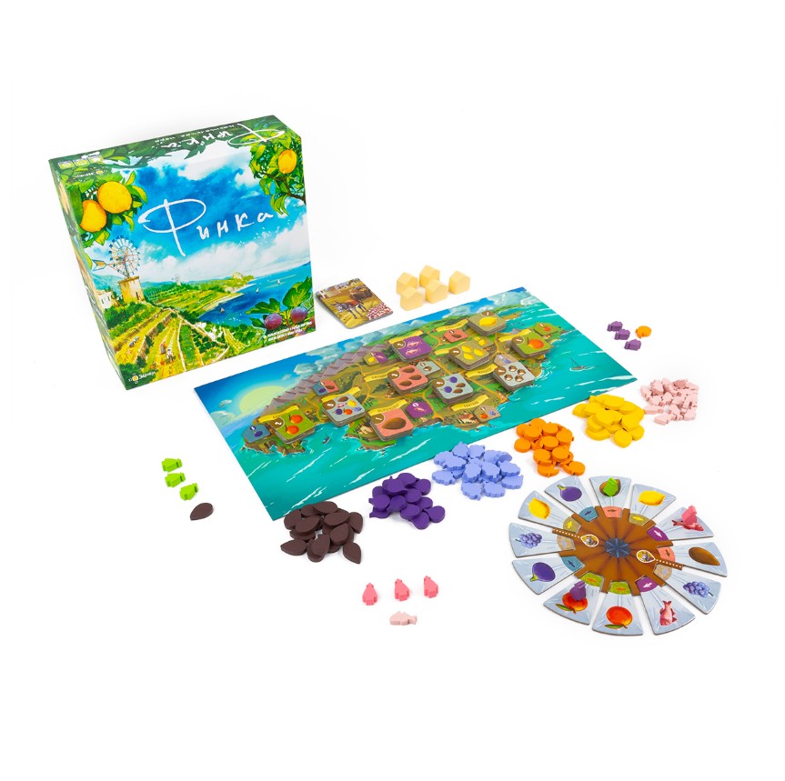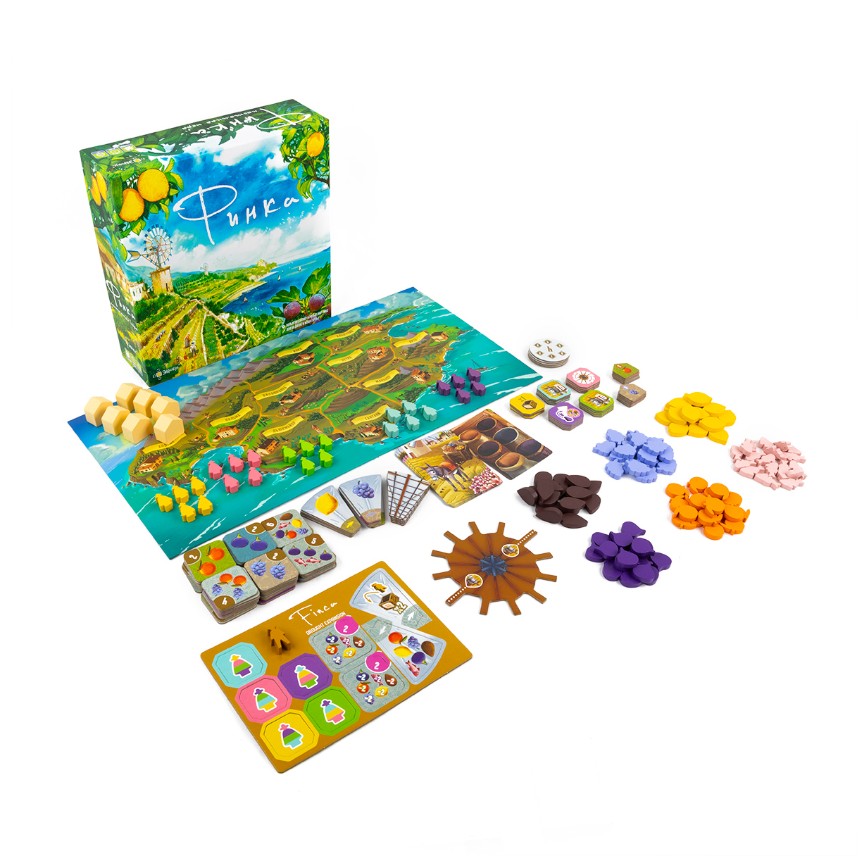 «Финка» — отличная семейная игра, в которой игроки возьмут на себя роль фермеров на Майорке, собирающих урожай и доставляющих его в разные регионы острова, заказы жителей которых будут меняться в течение игры. Игра выгодно отличается ярким оформлением, несложными правилами и недлинными партиями, а также интересной механикой получения ресурсов.