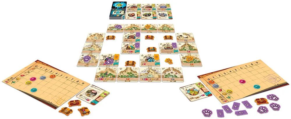 - Игроки по очереди прокладывают маршрут в гробнице, выкладывая свои лапки на входы.