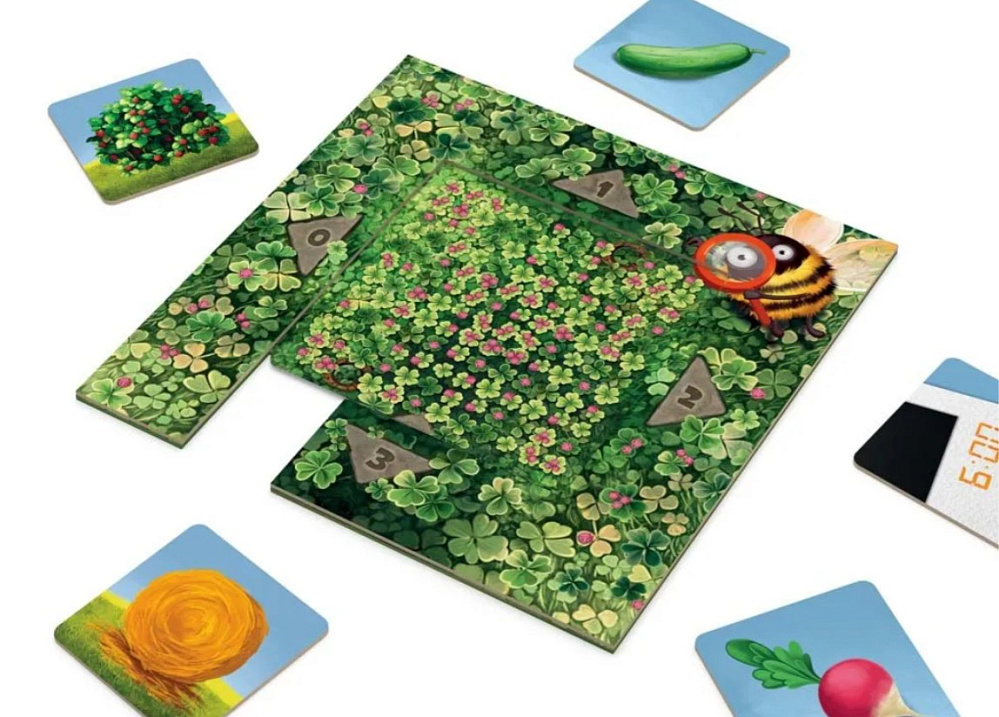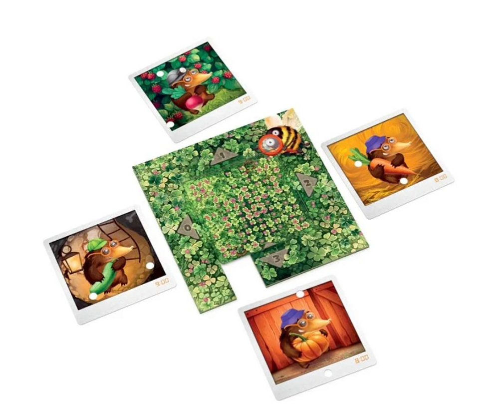В огороде поселилось семейство кротов, и время от времени с грядок стали пропадать овощи! Игрокам предстоит выяснить, кто из кротов оказался коварным воришкой. Команда действует вместе — как настоящие детективы. Каждый ход участники накладывают карточки подозреваемых на планшет расследования, а через отверстия в карточках получают подсказки от шмеля. Количество совпадений цветов помогает определить, какие детали дела верны, а какие стоит исключить. Шаг за шагом команда сужает круг подозреваемых, пока не станет ясно, кто украл морковку, где он её спрятал, в каком был головном уборе и во сколько произошло происшествие. Если хотя бы одна деталь будет названа неверно — расследование провалено!
