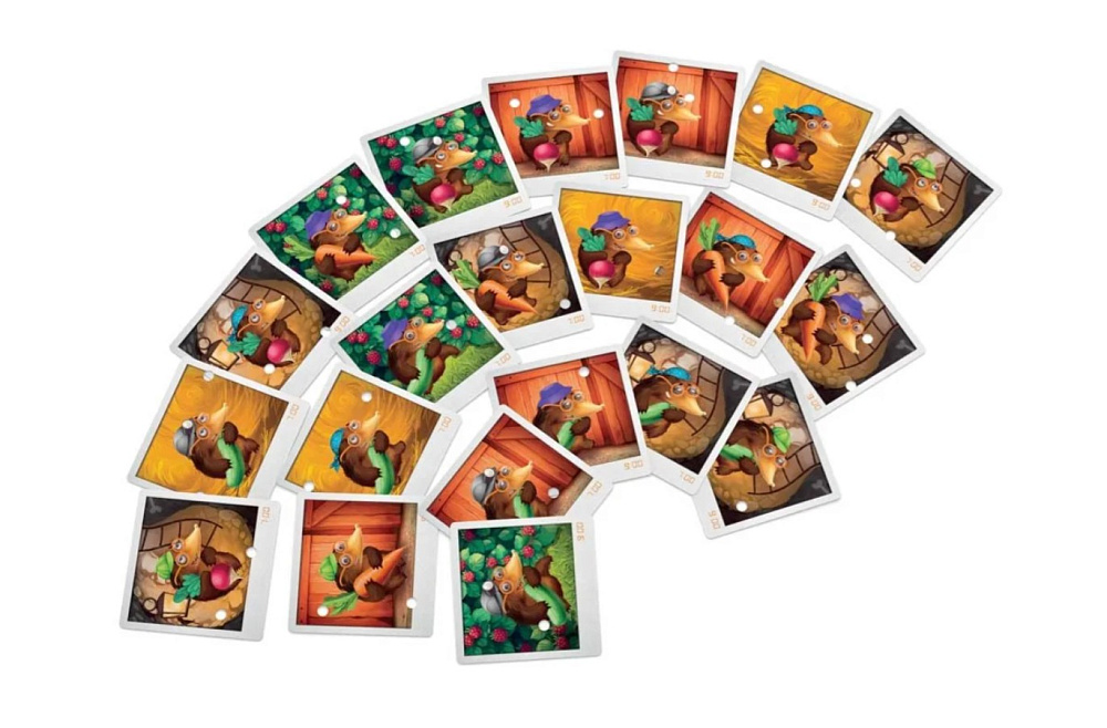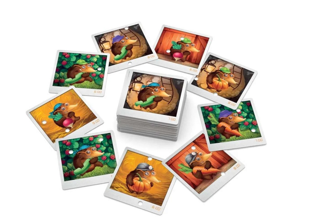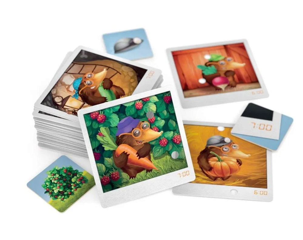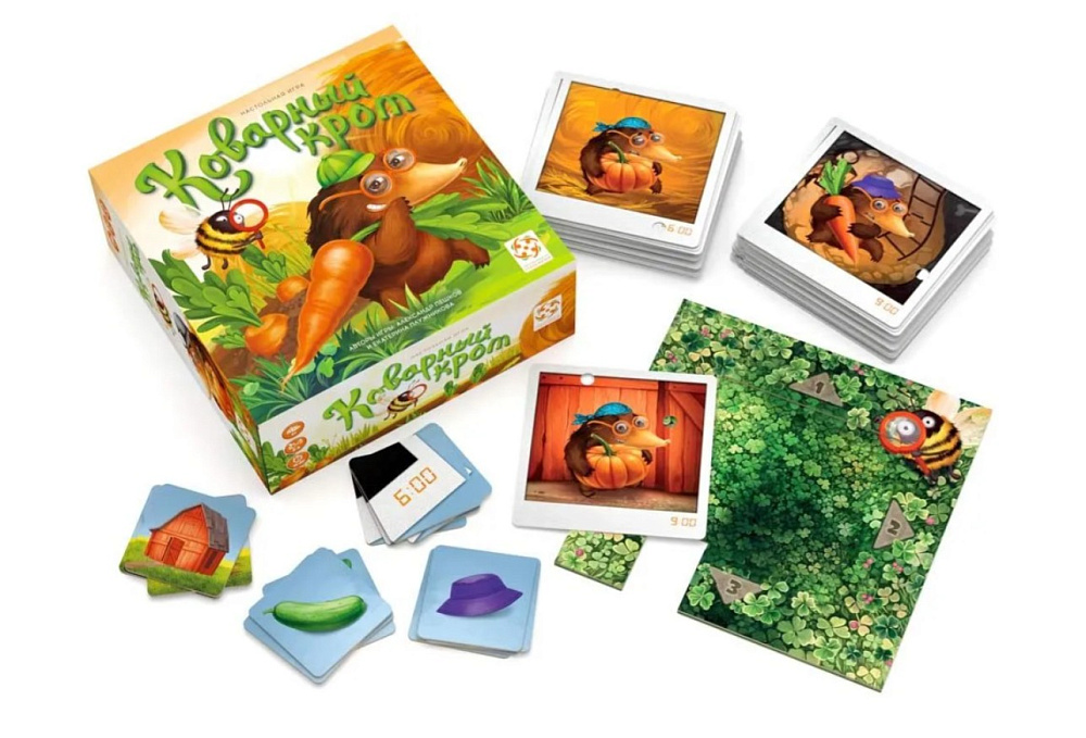 Настольная игра Коварный крот – увлекательная кооперативная игра-детектив для детей и всей семьи, в которой игроки расследуют забавные происшествия в огороде. Это семейная настольная игра с элементами дедукции и поиска совпадений, развивающая внимание, память и мышление. Коварный крот подходит для компании друзей, родителей с детьми и всех, кто любит детективные настольные игры, в которых важно командное взаимодействие и наблюдательность. Простые правила делают её отличным выбором для первого знакомства с настольными играми и для семейных вечеров.