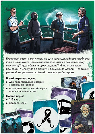 Курортный сезон закончился, но для команды лайнера проблемы только начинаются. Зачем капитан подчиняется единственному пассажиру? Куда сбежали сумасшедшие? И что скрывается под водой? Следуйте по сюжету и подмечайте детали – от ваших решений на развилках событий зависят судьбы героев.