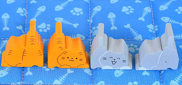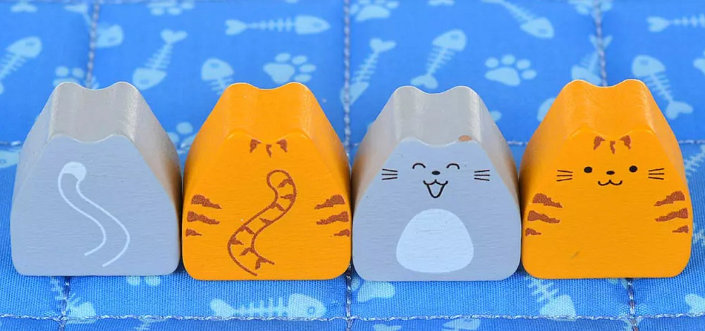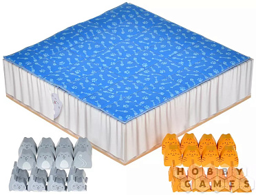 Переверните дно коробки и накройте его стёганым одеялом – это и будет ваша кровать. Ой, то есть, игровое поле! Выберите цвет котиков и возьмите все их фишки – 8 котят и 8 взрослых котов (последние пока что не будут вам доступны). Затем определите первого игрока, это будет очень просто: кто последним гладил кота, тот и первый!
