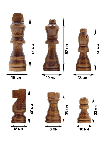 - Пешка: высота 3,2 см, диаметр основания: 1,6 см.