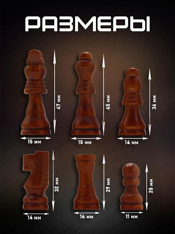 - Пешка: высота 2,5 см, диаметр основания: 1,1 см.
