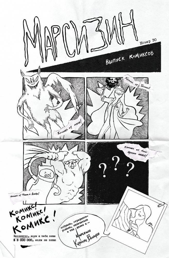 Книга включает в себя удивительный «МарсиЗин» от самой Королевы Вампиров, демонстрирующий таланты Лиз Принс (Tomboy), Иена МакГинти (Munchkin), Юми Сакугавы (I think I’m in Friend-Love with You) и многих других художников комиксов крутых жителей Ооо.