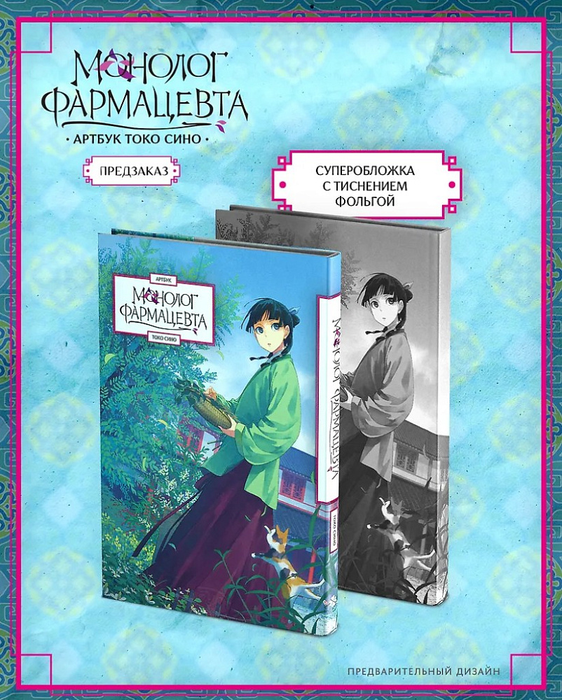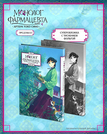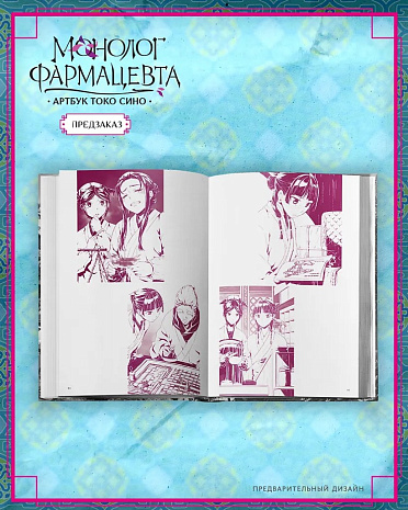 Артбук «Монолог фармацевта» – ваш проводник в мир любимой истории. Здесь собраны работы иллюстратора ранобэ Токо Сино, концепты персонажей с её комментариями, неопубликованные дизайны и эксклюзивные материалы, а также рассказ художницы о своём творческом пути. Более трёхсот артов позволят вам детально изучить главных героев и их окружение.