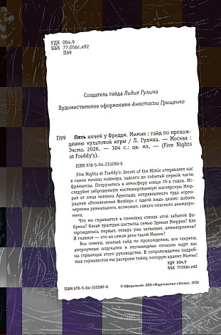 Новинка в культовой вселенной FNAF — гайд по прохождению игры «Five Nights at Freddy’s: Secret of the Mimic». Абсолютно новая информация в эксклюзивном подробном руководстве. Потрясающий подарок фанатам вселенной, а также любителям хорроров! Вся правда о создании первых аниматроников: узнайте, как всё начиналось, и почувствуйте истоки игровой вселенной!