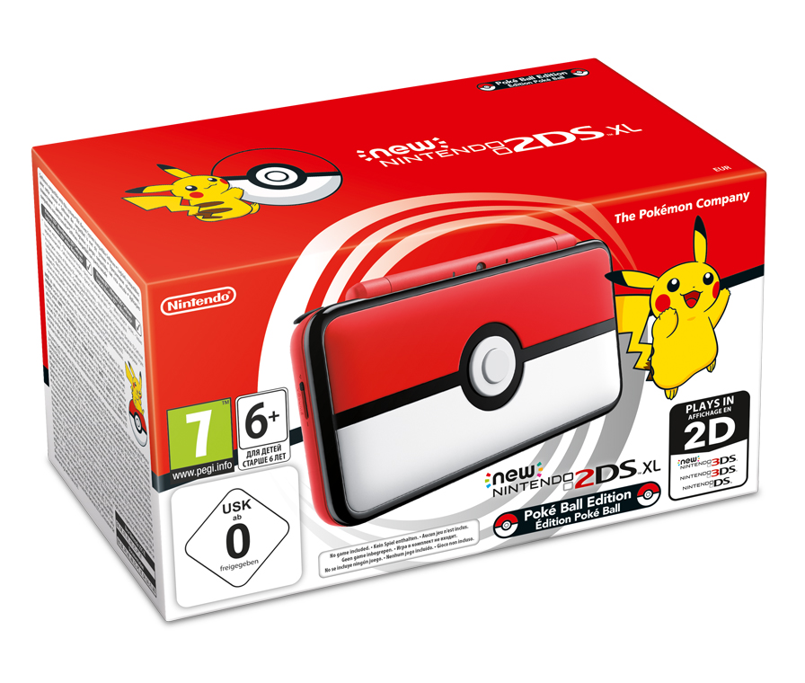 Особое издание New Nintendo 2DS XL Poke Ball Edition. Отличительной чертой этой яркой красно-белой игровой системы New Nintendo 2DS XL является стилизованное изображение Покешара на верхней крышке. Данная система поставляется без игры.