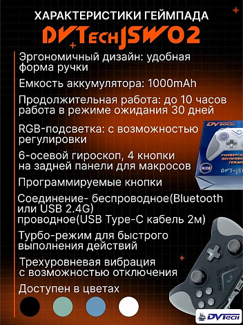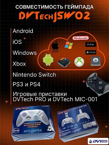 Мощный беспроводной геймпад DVTech JSW02 – универсальное решение для истинных геймеров! Откройте для себя новый уровень игрового комфорта с поддержкой всех популярных платформ и систем.