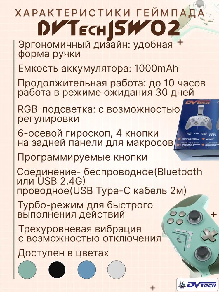 Мощный беспроводной геймпад DVTech JSW02 – универсальное решение для истинных геймеров! Откройте для себя новый уровень игрового комфорта с поддержкой всех популярных платформ и систем.