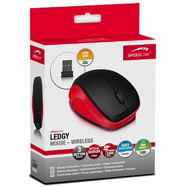Идеальное дополнение для любого ПК и ноутбука. LEDGY MOUSE базируется на популярной модели классической трехкнопочной мыши и благодаря трем кнопкам и колесику прокрутки обеспечивает быстроту навигации по меню приложений, точность и плавное движение курсора с оптическим считыванием. LEDGY благодаря надежной технологии связи 2,4GHz обеспечивает работу в радиусе до восьми метров, автоматический режим экономии энергии продлевает срок службы аккумуляторов.