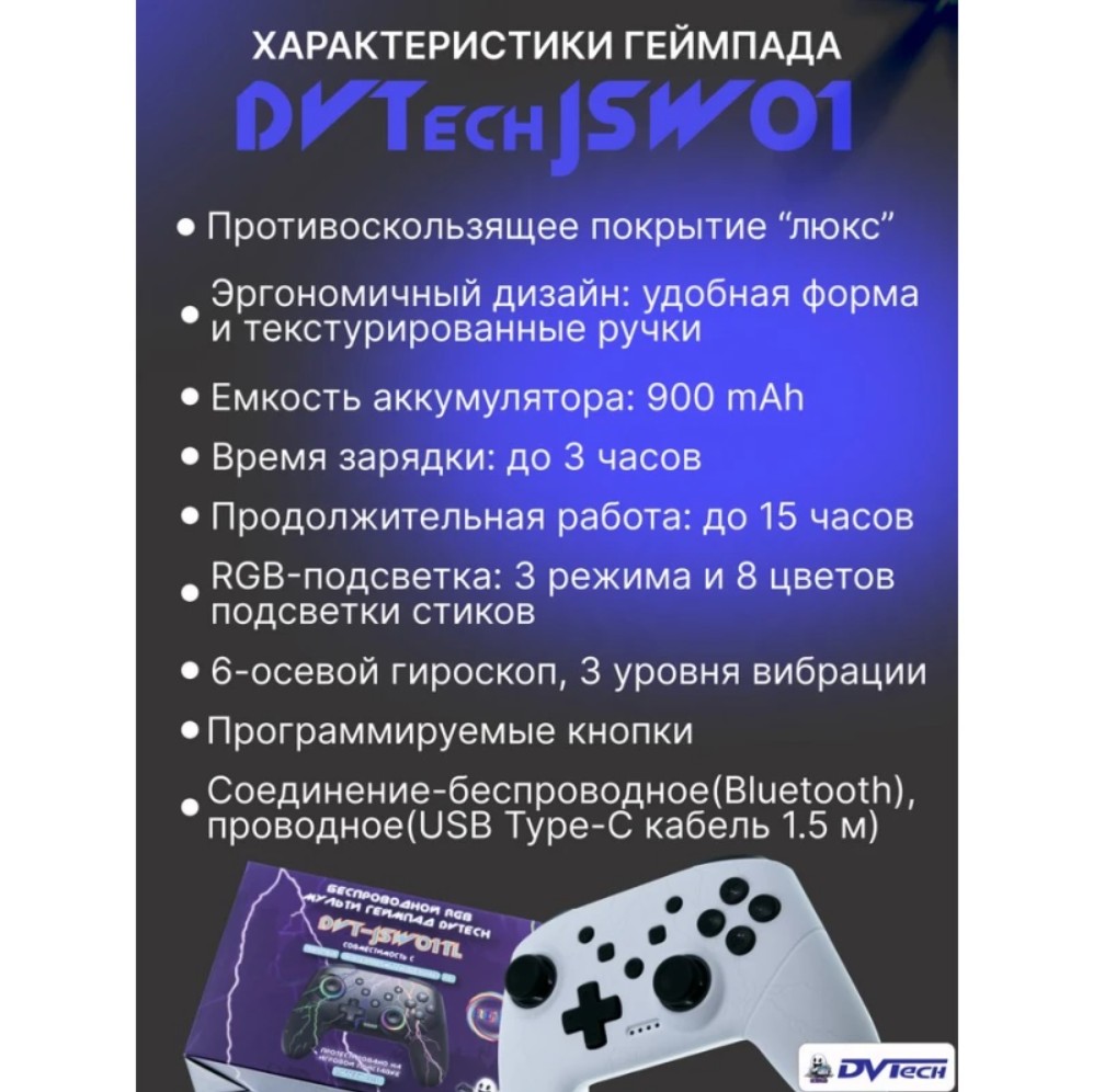 Универсальный геймпад DVTech JSW01 — ваш идеальный компаньон для игр на любой платформе!