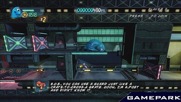 - Играйте вместе! "Монстры против пришельцев" можно проходить в совместном режиме, где второй игрок управляет доктором Тараканом. Ученый экипирован разнообразными хитроумными устройствами и благодаря тараканьей смекалке может пробраться в самые труднодоступные места.