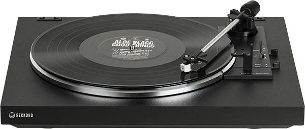 На модели установлен легкий алюминиевый тонарм, оснащенный точечными подшипниками. Rekkord Audio F100 поставляется с MM-звукоснимателем компании Audio-Technica, положение которого полностью настроено на заводе. Величина прижимной силы и антискейтинга также отрегулированы оптимальным образом специалистами компании, в результате вертушка готова к использованию практически сразу после распаковки.