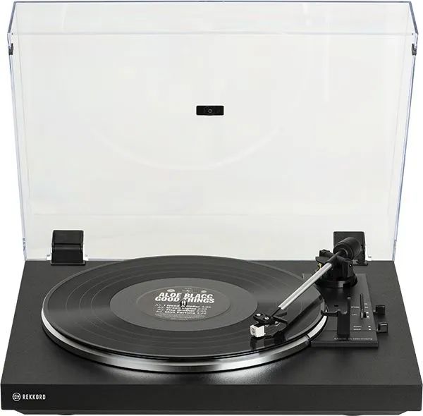 Для начала прослушивания установленной на проигрыватель пластинки достаточно перевести рычажок на его верхней панели в положение Play. Тонарм автоматически подведет звукосниматель к началу первой композиции и опустит иглу на дорожку. По окончании прослушивания тонарм поднимется и вернется в исходное положение. Управлять Rekkord Audio F100 можно и вручную, используя демпфированный микролифт. В модели предусмотрено электронное переключение скорости вращения пластинки (33 1/3 или 45 об/мин).