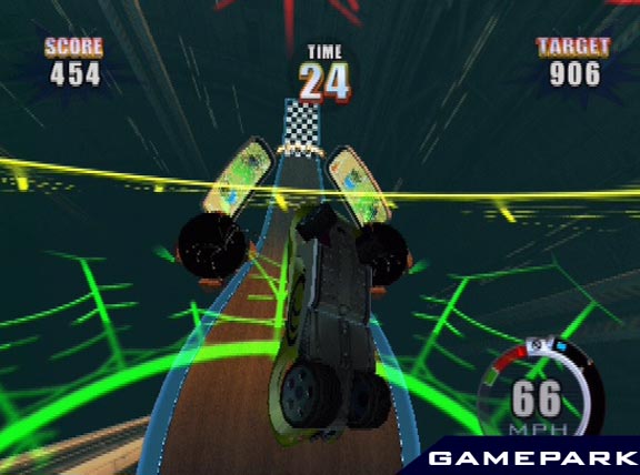 На выбор игроку предлагаются 30 оригинальных автомобилей, 24 гонки и 12 треков в разных ландшафтах - пляж, джунгли, зона нулевой гравитации, остров, паучья аллея с паутиной и земля, покрытая лавой.