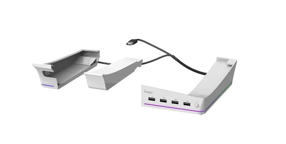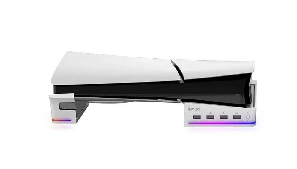 iPega PG-P5S021 — это подставка для приставки Playstation 5 Slim. Она оснащена четырьмя портами USB 2.0, одним портом USB с этикеткой для зарядки и 14 RGB-световыми эффектами.