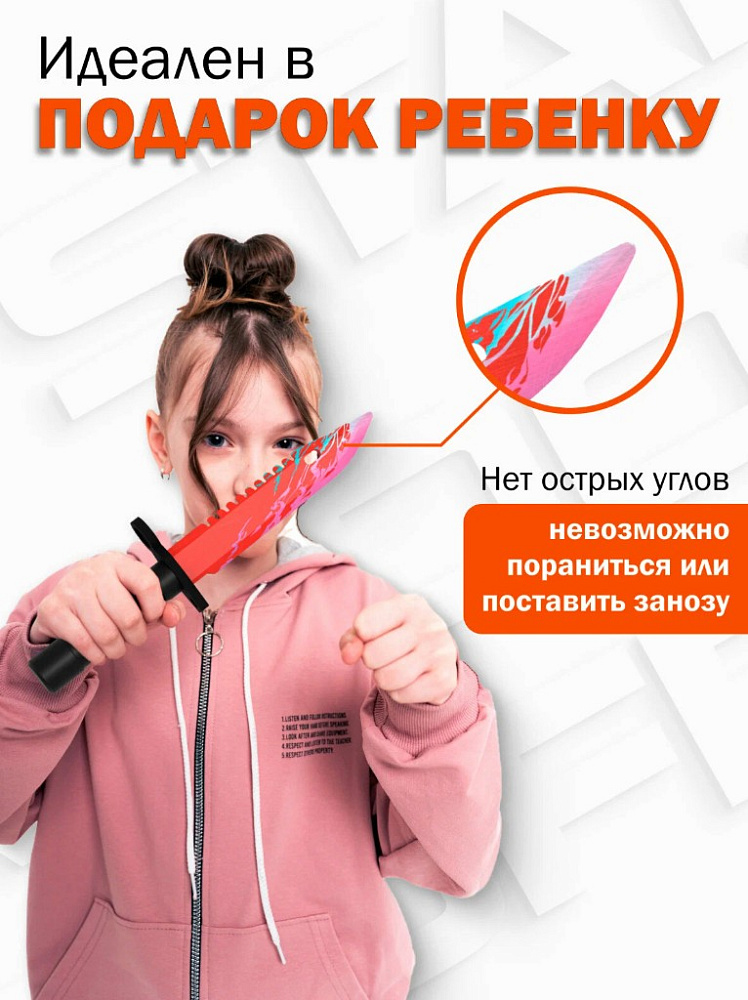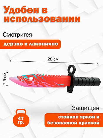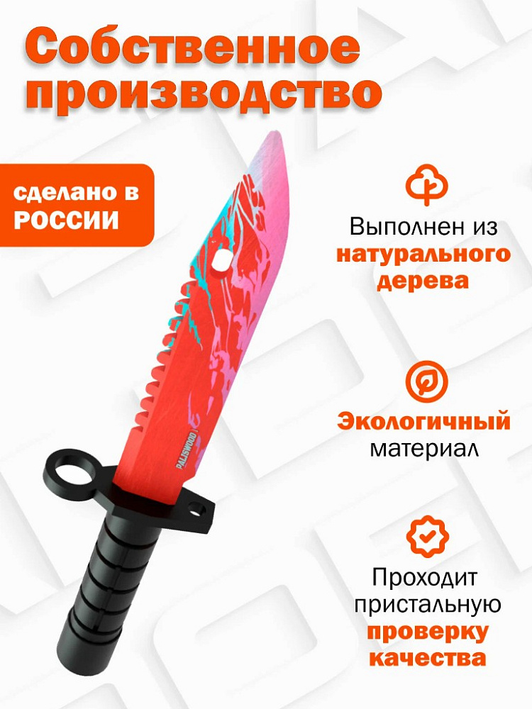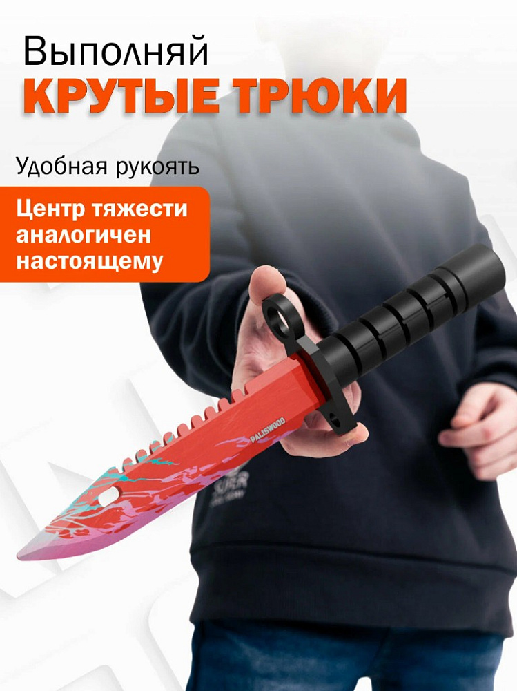 Штык – нож М9 — отличный выбор для подростков, которые увлечены играми и коллекционированием оружия из популярных вселенных. Этот деревянный кинжал выполнен с высокой детализацией, повторяя стиль холодного оружия из знаменитой серии Standoff . Настоящий сувенир , который станет ярким украшением детской комнаты или коллекции фаната игр CS и Standoff.