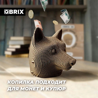 Характеристики 3D конструктора из картона Qbrix Kids – Копилка Догикоин (39 элементов):