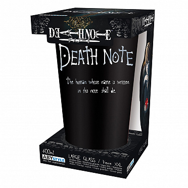 Бокал стеклянный Death Note Large Glass 400 ml Ryuk Matte x2 ABYVER163 с логотипом тетради смерти — вымышленной магической тетради из одноимённых манги, аниме, серии фильмов и компьютерных игр.