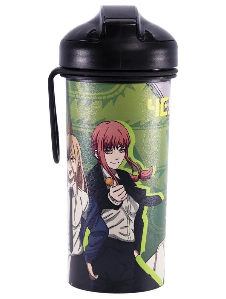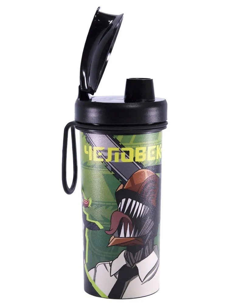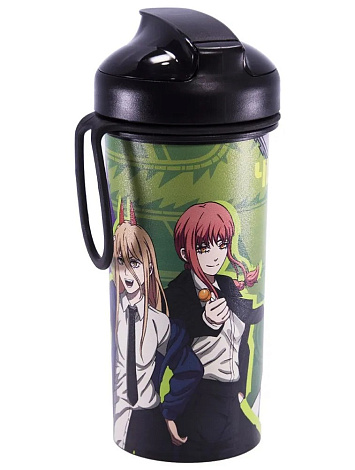 Бутылка Человек-бензопила для холодных напитков с петлей (400 мл) по мотивам аниме и манга Человек-бензопила.