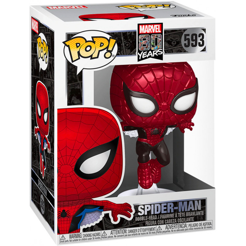 Фигурка Funko POP! Bobble: Marvel: 80th: First Appearance Spider:Man - эксклюзивная фигурка с уникальной металлизированной окраской.