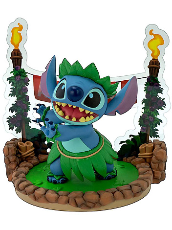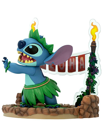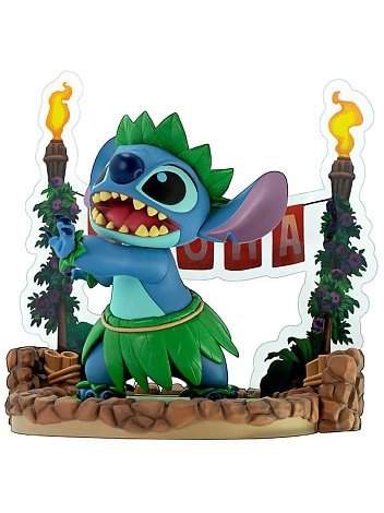 Одетый в традиционную гавайскую одежду и исполняющий танец хула на красочной тропической платформе, этот персонаж передает игривый и милый характер любимого инопланетянина галактики! Стич - генетический эксперимент-пришелец. Изначально был создан, чтобы создавать хаос в галактике и разных городах. Отличается вспыльчивостью и разрушительным поведением, которые удаётся укротить земной девочке Лило. У Стича много неординарных способностей: он неуничтожим, пуленепробиваем, имеет ночное и инфракрасное зрение, высокочувствительный слух, способность поднимать вещи массой в 3000 раз больше собственной и другие.