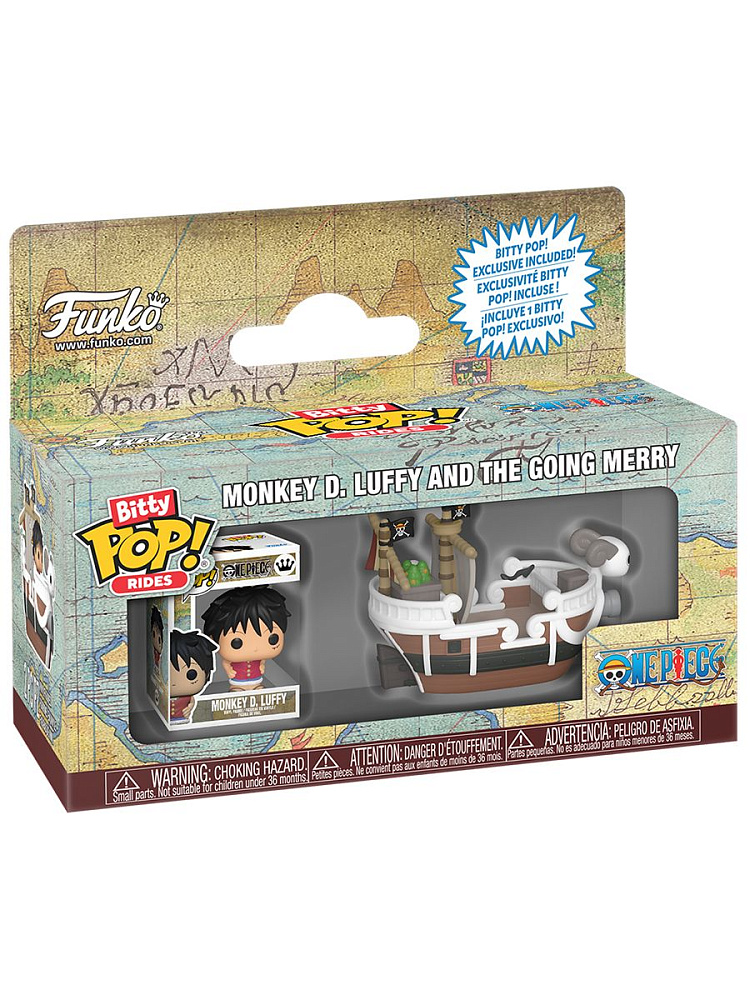 Луффи – будущий Король Пиратов – отправляется в плавание на верном Гоинг Мерри в формате Bitty Pop! Rides. Маленький капитан и его легендарное судно готовы бороздить коллекцию в поисках Ван-Писа.