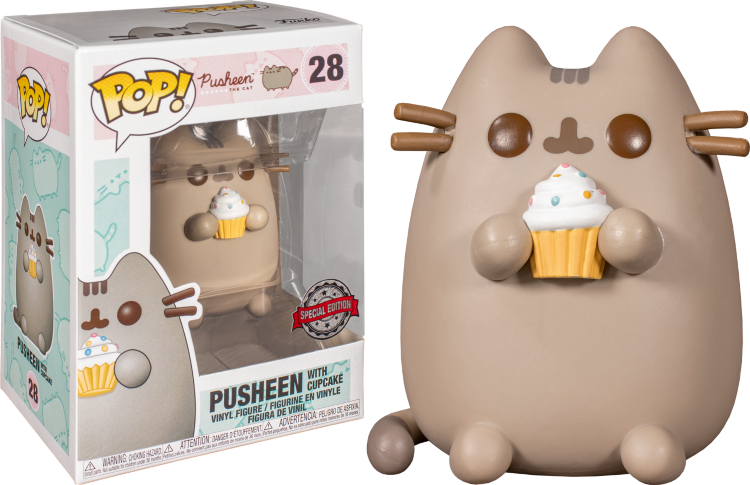 Фигурка Funko POP: Pusheen The Cat – Pusheen With Cupcake создана по мотивам серии фотографий / комиксов, в которых Pusheen носит модные предметы, такие как монокли и верхние шляпы. Выбирая имя, Белтоны вспомнили, что в ирландском языке котёнок называется puisin – отсюда и Пушин Кэт.
