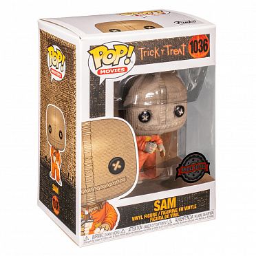 Фигурка Funko POP! Movies Trick R Treat Sam w/Razor Candy (Exc) 52264 выполнена в виде главного персонажа фильма "Кошелек или жизнь". Фильм состоит из четырёх связанных между собой страшных историй, произошедших на Хэллоуин в американском городке Уоррен Вали в штате Огайо. Все эти истории объединяет одно существо — Сэм — таинственная фигура в оранжевой потёртой пижаме, носящая мешок на голове. Он появляется во всех историях, следя за тем, чтобы традиции Самайна/Хэллоуина неукоснительно соблюдались.