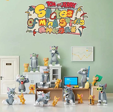 Каждая фигурка в сюрприз боксе — это маленький шедевр. Особое очарование коллекции придает то, что Том выполнен из приятного на ощупь флокированного материала, который восстанавливает истинный облик пушистого кота. Джерри же дополняет каждую динамичную сценку.