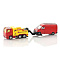 Корпус машинок из набора Сервисный транспорт выполнен из прочного металла и пластика. Колёса выполнены из резины и вращаются. Внутри модельки выполнены качественно и аккуратно, с большим вниманием к деталям. Аварийная машина оснащена специальным подвижным буксировочным устройством, к которому может быть прицеплена любая машинка Siku аналогичного размера.