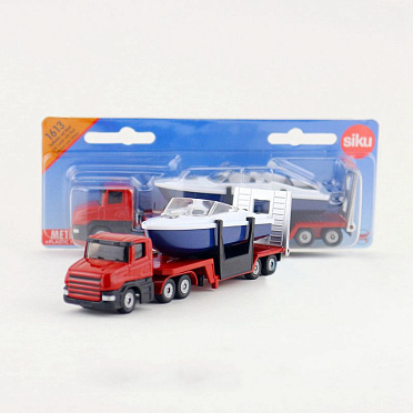 Тягач с катером от немецкого бренда Siku порадует каждого мальчика и отлично дополнит коллекцию моделей транспорта.