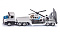 Игрушечная модель тягач с вертолётом на прицепе, полицейские, корпус тягача и прицепа выполнены из металла, лобовое и боковые стёкла из прозрачной тонированной пластмассы, колёса выполнены из пластмассы и вращаются, можно катать. Прицеп отцепляется от тягача, вертолёт снимается с прицепа.