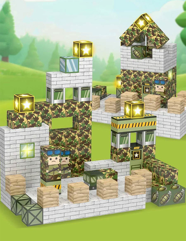 Постройте свою собственную военную базу, используя различные элементы конструктора. Каждый блок соединяется друг с другом с помощью сильных неодимовых магнитов, обеспечивая надежность и устойчивость ваших конструкций. Это отличный способ развить свои инженерные навыки и креативность, собирая и создавая уникальные постройки.