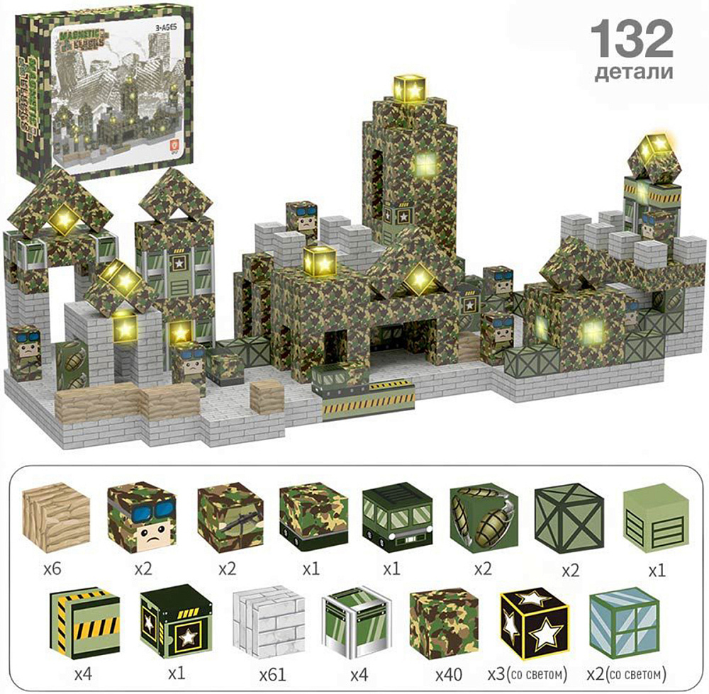 Конструктор магнитный Minecraft – Военная База (132 блока / 5 светящихся) (MC16810)