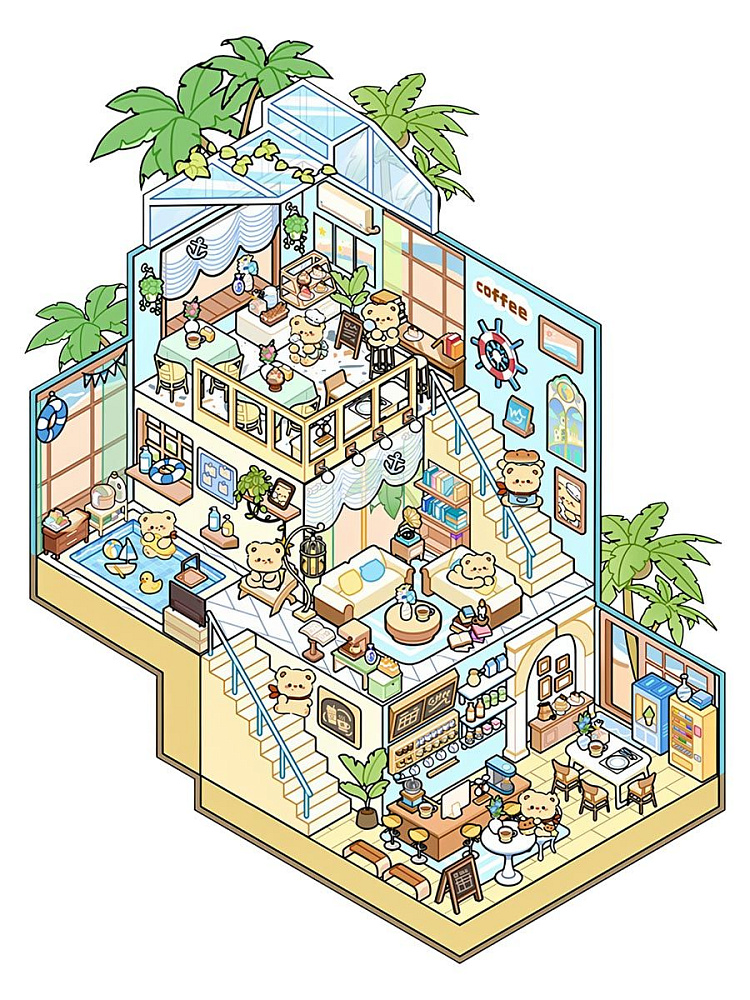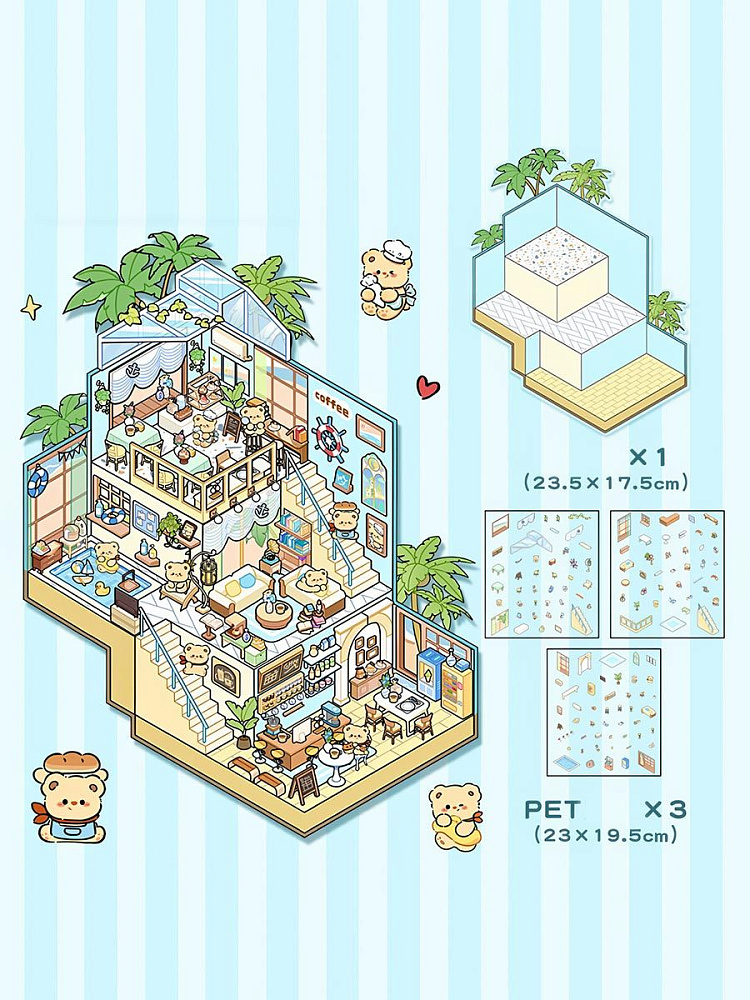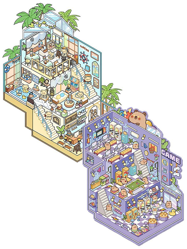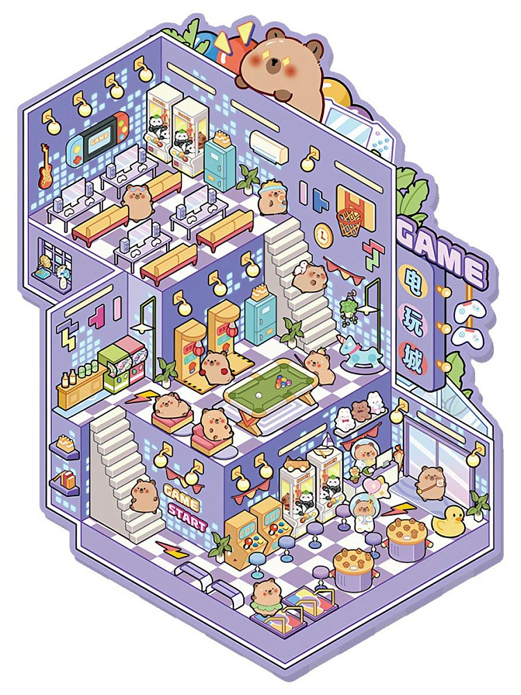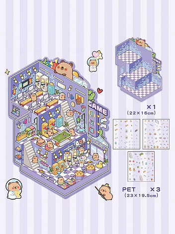 Интересный набор антистрессовых наклеек для творчества. Он включает 4 мини-комнаты: