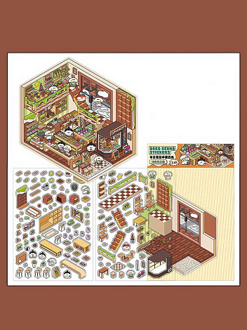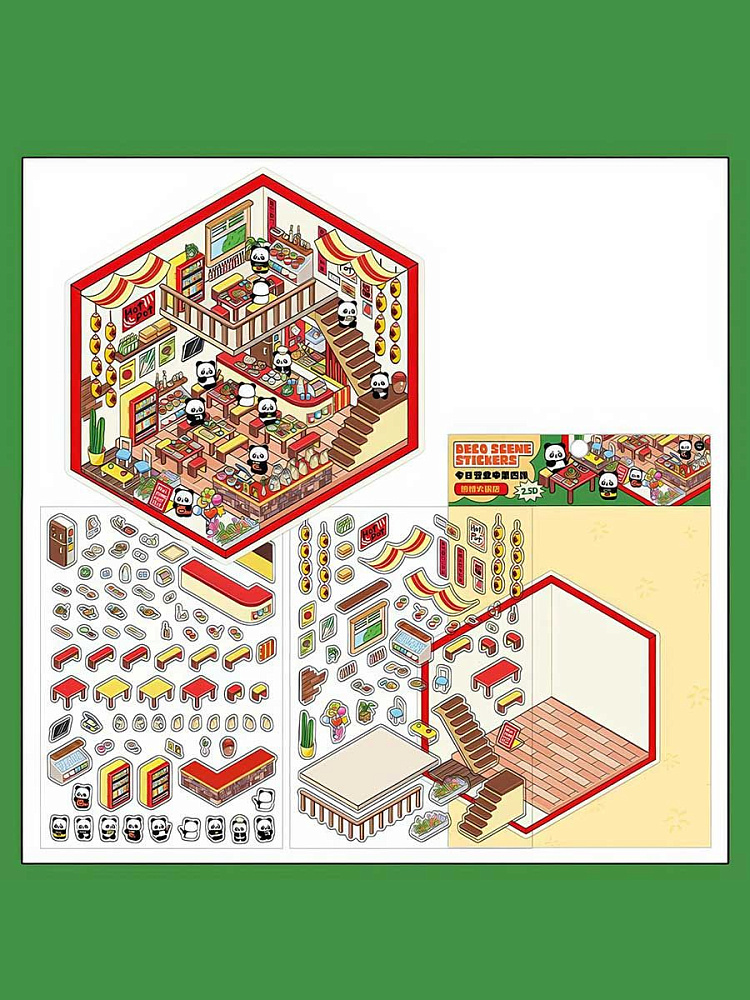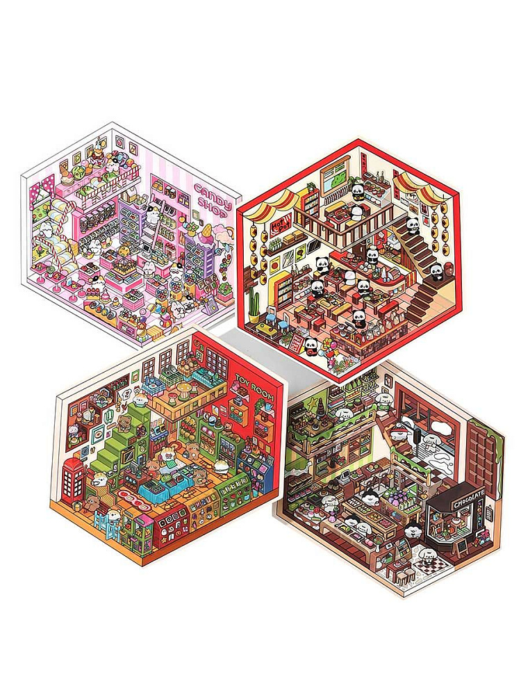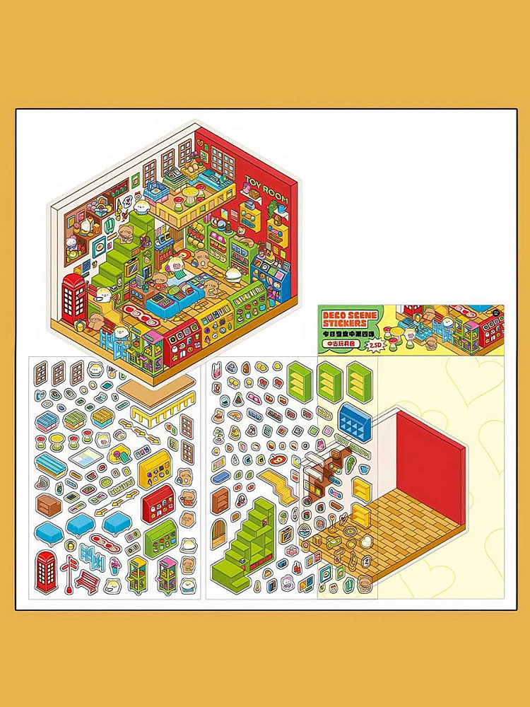 Интересный набор антистрессовых наклеек для творчества. Он включает 4 мини-комнаты: