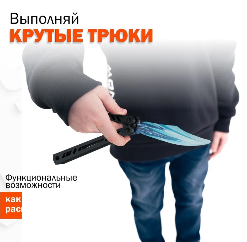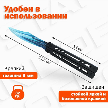 Нож-бабочка из культовой компьютерной игры порадует поклонников своим высоким качеством и яркими скинами. В нашем каталоге фанаты могут приобрести 3D модель для упражнения в трюках. Нож бабочка в скине стендофф ДРАГОН ГЛАСС положит начало коллекции игрового оружия или будет дополнением к уже существующей. Нож отличается ПРОСТОТОЙ ИСПОЛЬЗОВАНИЯ. Его легко РАЗЛОЖИТЬ и СЛОЖИТЬ одним движением, а плавность хода лезвия РЕГУЛИРУЕТСЯ натяжением болтов.