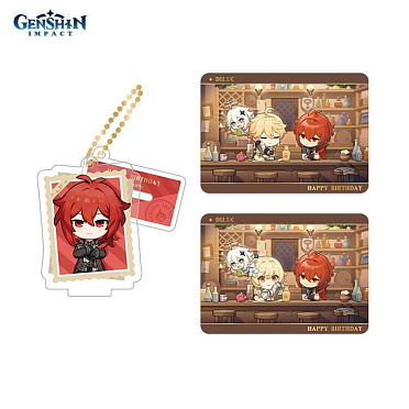 Подарочный набор miHoYo Genshin Impact: Diluc (брелок + карточки) по мотивам компьютерной игры «Genshin Impact».