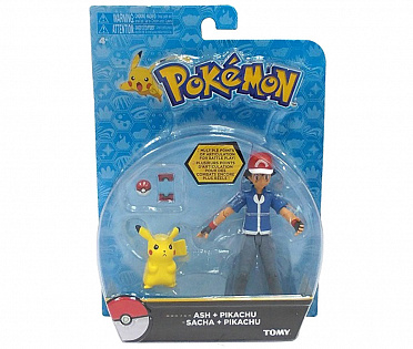 Преисполненный решимости стать настоящим чемпионом, тренер Эш всегда готов к новым приключениям вместе со своим верным другом Пикачу! Данный набор из двух фигурок займёт почётное место на полке любого фаната вселенной Pokémon. Фигурка Эша имеет 13 точек артикуляции для установки в различных позах, при этом в одной руке тренер держит Поке-Болл, а в другой – Покедекс.