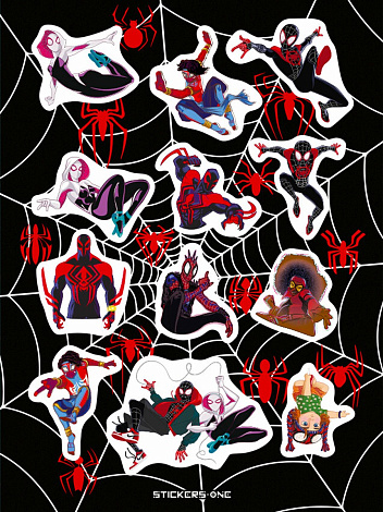 Стикерпак Spider-Man: Across the Spider-Verse по мотивам аниме и манга Человек-паук: Паутина вселенных.