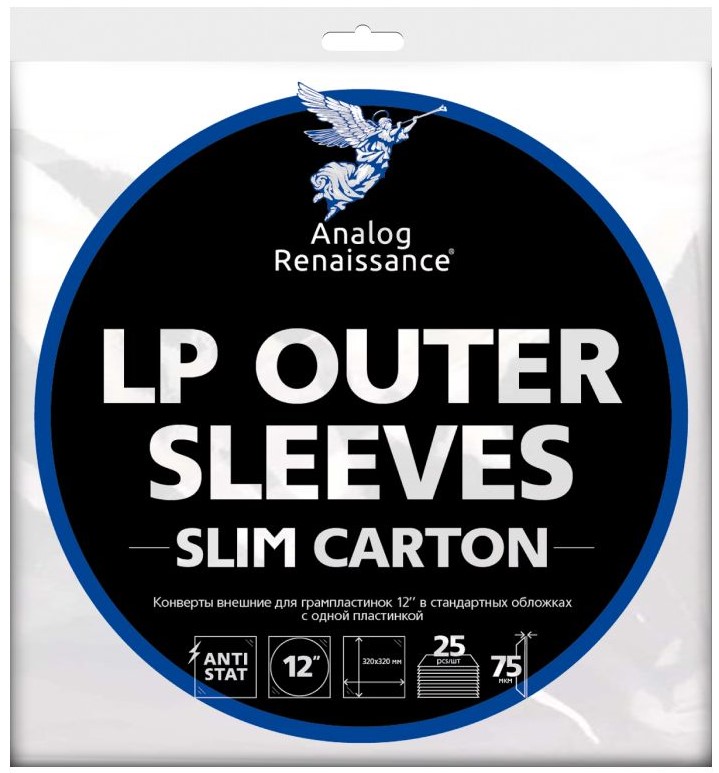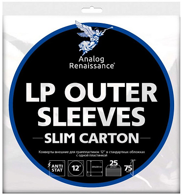 Внешние конверты для 12" пластинок Slim Carton от Analog Renaissance изготавливают из плотного полипропилена. Они прозрачные, защищают обложки от повреждений и не притягивают пыль. Конверты предназначены для одинарных (тонких) альбомов. В комплект входит 25 штук.