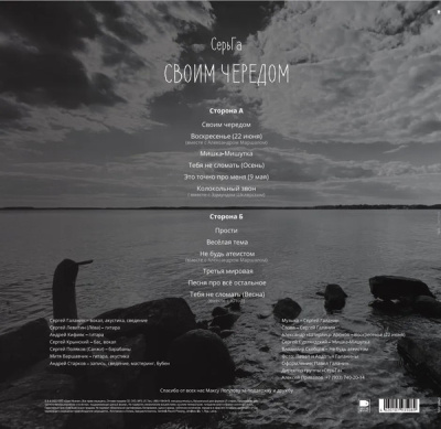 СерьГа – Своим чередом (LP) – издание на 180-граммовом черном виниле пятнадцатого студийного альбома от рок-группы «СерьГа», вышедшего в 2021 году.