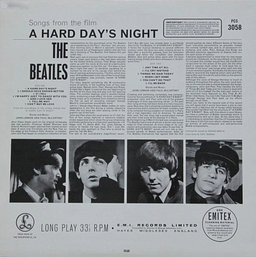 A Hard Day's Night – третья студийная работа Beatles, впервые изданная в 1964 году. Большая часть песен была написана специально для одноименного фильма, в котором члены коллектива сыграли самих себя.