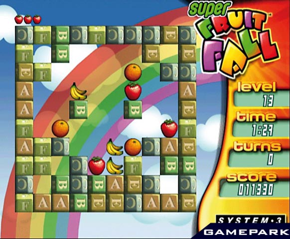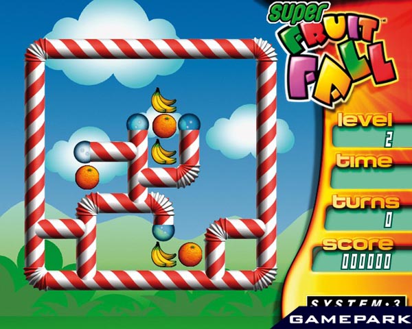 Super Fruitfall (Wii) - представляет из себя довольно забавную головоломку в которой вам предстоит путем вращения игрового экрана соединить три одинаковых фрукта. И не думайте, что это будет так легко сделать! Игра имеет разные уровни сложности, так что даже далеко не всем взрослым будет под силу это сделать сразу.