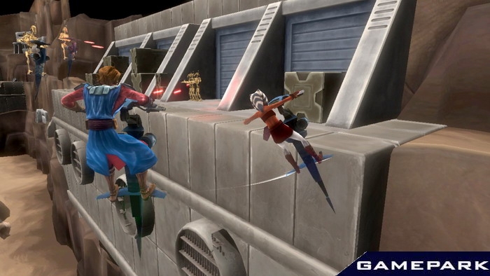 - Прорывайтесь сквозь строй врагов при помощи Силы и светового меча. Совершайте невероятные прыжки и расталкивайте врагов толчком Силы. У каждого из персонажей свой уникальный боевой стиль, свои навыки и приемы.